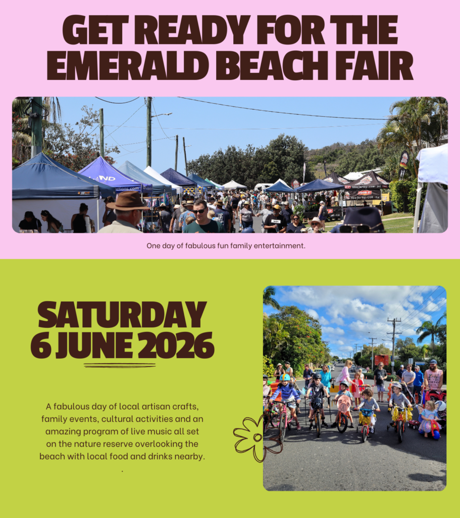 I’m so happy to see the fair coming back to Emerald Beach. It was always such a great day out for the family, great food, fun for the kids and the energy of the community is amazing.